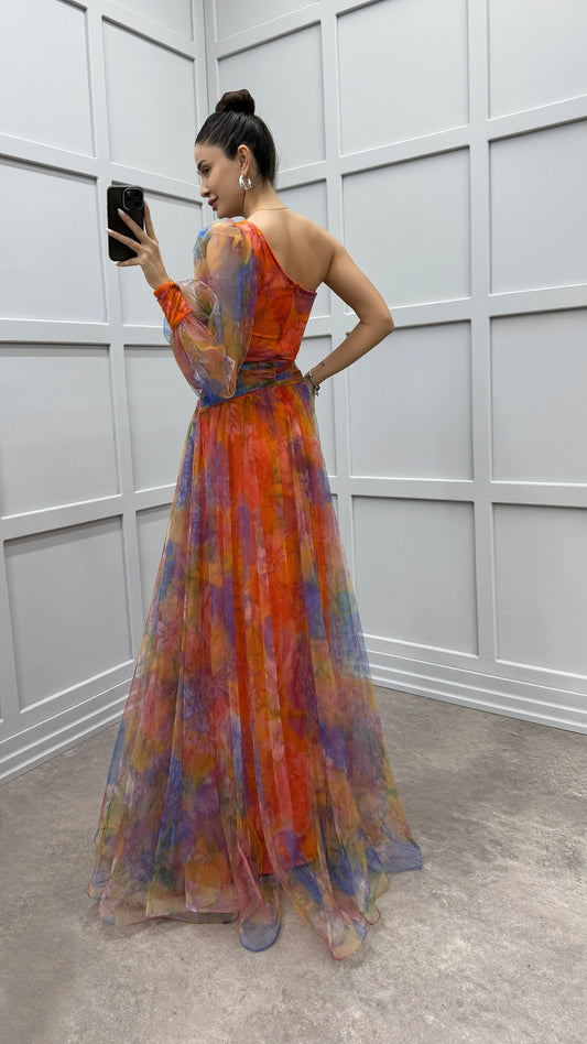 MILA | ROBE DE SOIRÉE EN TULLE À PLUMES