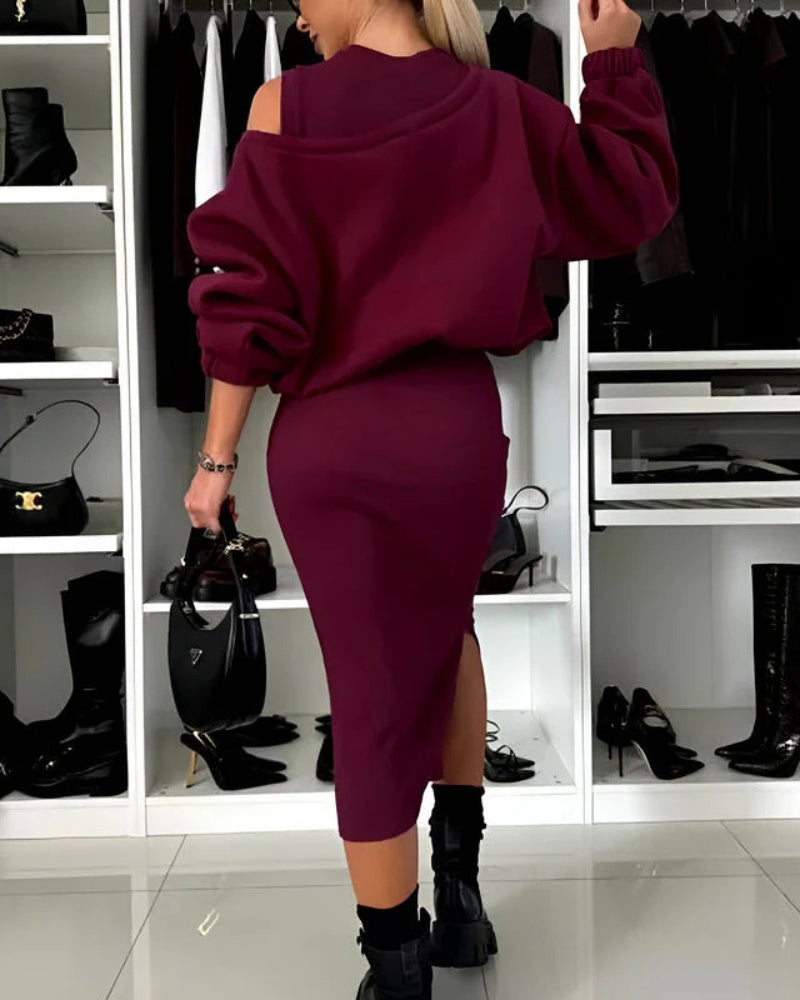 Une fusion parfaite entre une jupe midi élégante et un pull douillet, cet ensemble polyvalent allie confort et sophistication.