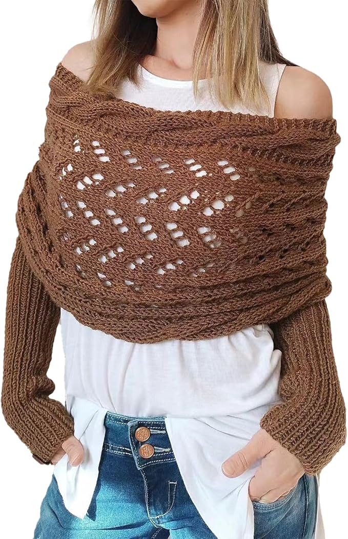 l'écharpe avec manches pour femme dispose de motifs complexes de câbles qui ajoutent une touche de sophistication et de charme à n'importe quelle tenue.