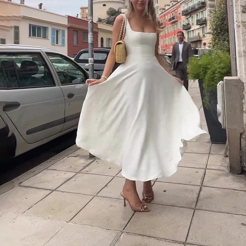 Découvrez notre robe GINA , avec son encolure carrée sophistiquée et sa couleur unie, un choix parfait pour toute occasion spéciale.