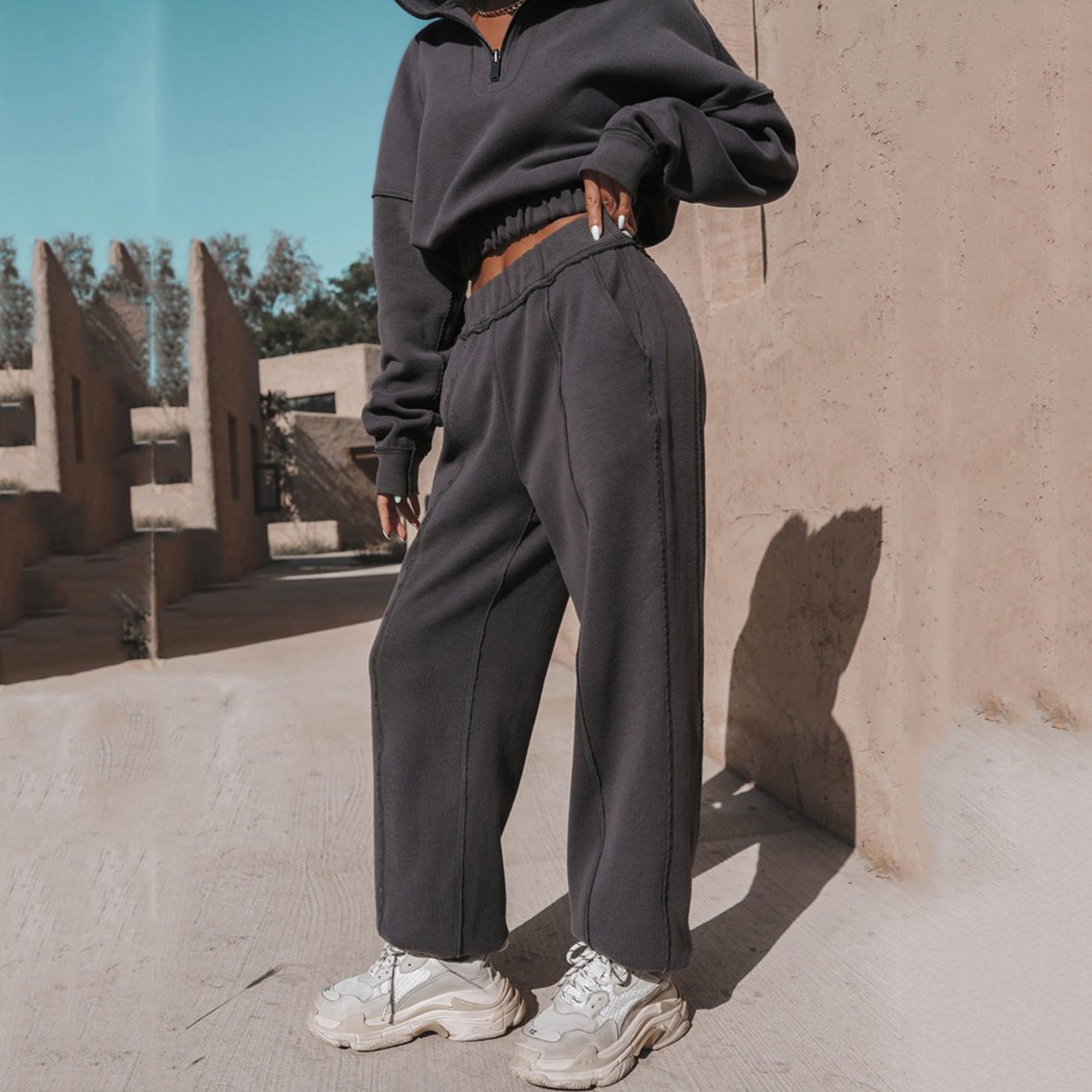 Douceur de tous les jours ce sweat ! On aime beaucoup sa coupe courte stylée, son coloris crème flatteur et son design à coutures contrastantes et à demi-zip. C'est à enfiler avec le bas assorti et une paire de paniers. Trop cool !