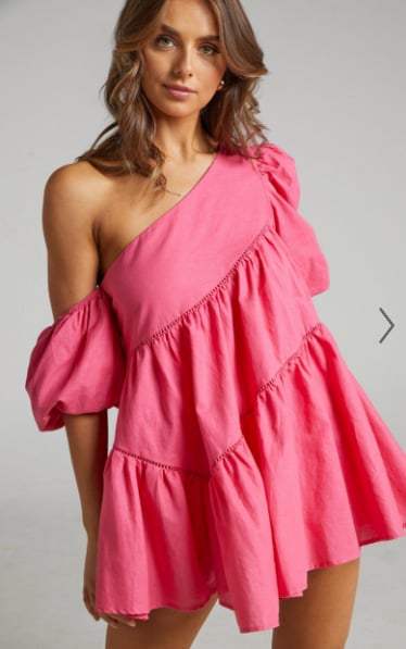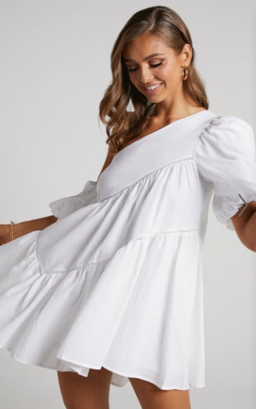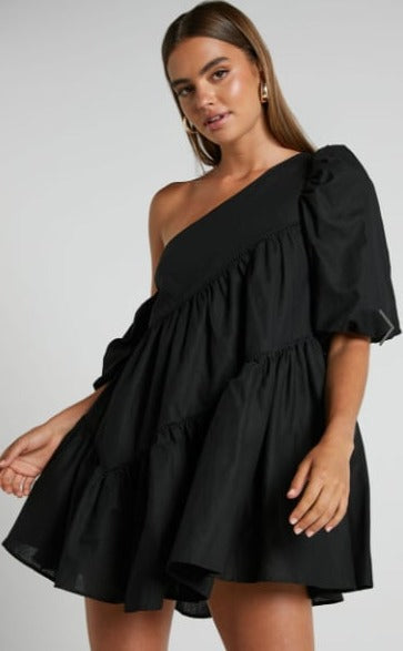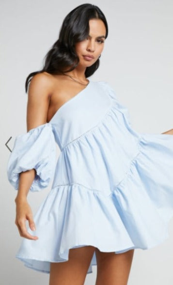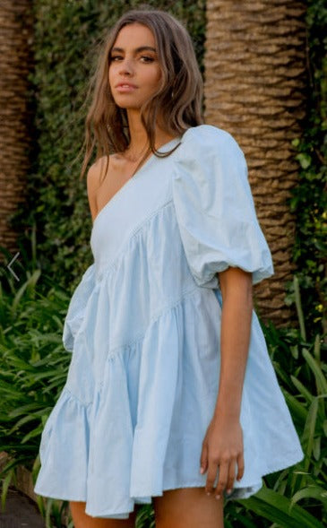 Vous aurez l’air aussi jolie que possible dans la Mini robe de poupée à manches bouffantes Monika! Cette adorable robe présente un décolleté asymétrique avec une sur et une sur les épaules bouffantes.