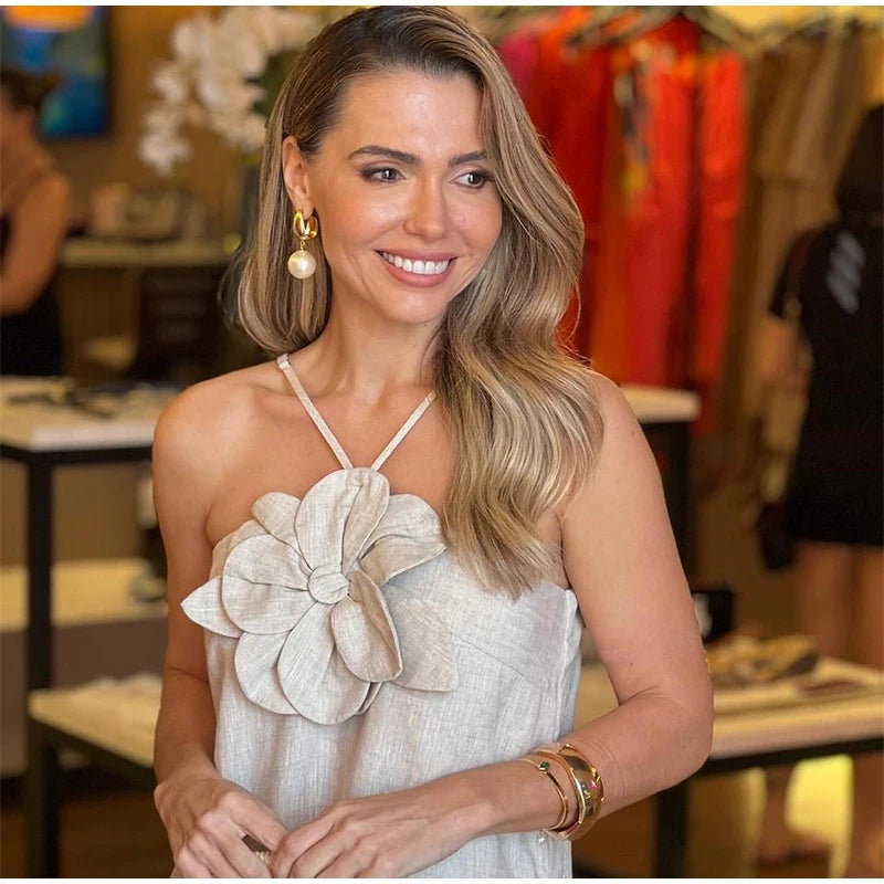 Optez pour un look qui vous démarque. Avec sa conception unique et ses détails floraux enchanteurs, cette robe ajoutera instantanément du style à votre garde-robe. Soyez prête à captiver les regards et à vivre vos moments de vacances avec élégance et confiance.